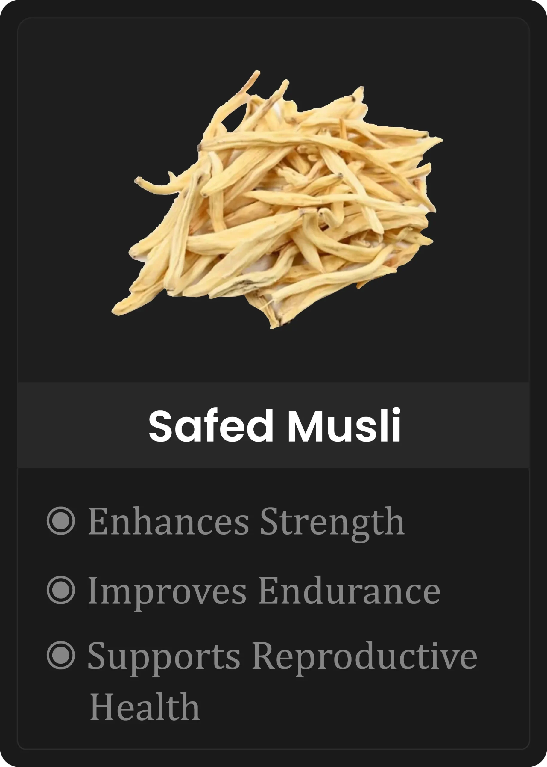 Made with proven ingredients like Ashwagandha and Safed Musli – trusted by men for generations to boost vitality.